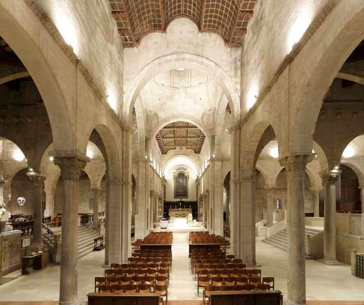 ⛪ L’interno a tre navate, arricchito da colonne in marmo e affreschi antichi.