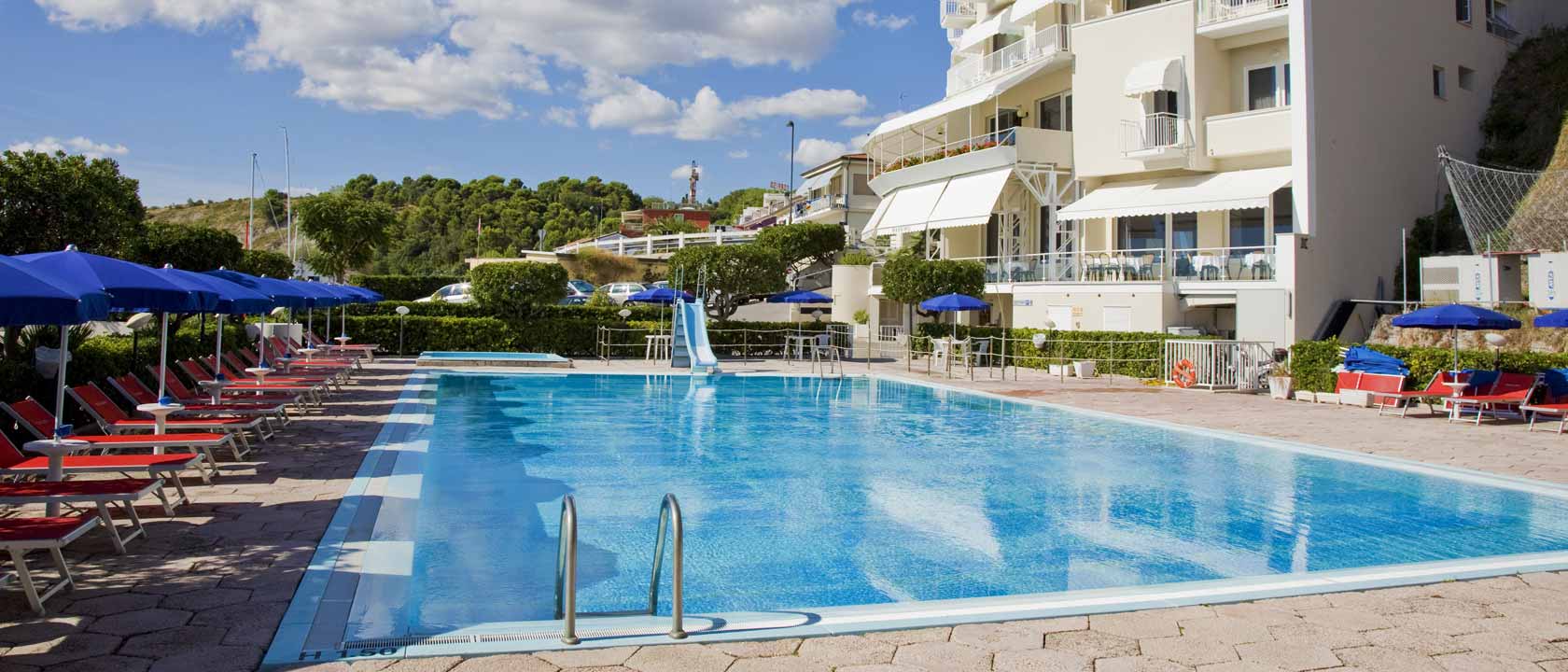 Un hotel a Numana sul mare, con piscina esclusiva, parcheggio riservato e spiaggia privata, si affaccia sul porticciolo turistico del paese, nella zona in cui le ultime pendici del Conero cedono il passo alle dorate spiagge del litorale Numanese.