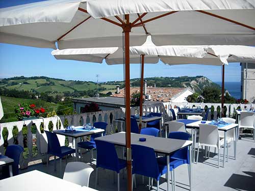 D’estate si mangia sulla terrazza della trattoria dove si puo aprezzare tutto il Conero… Bellissimo